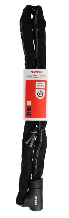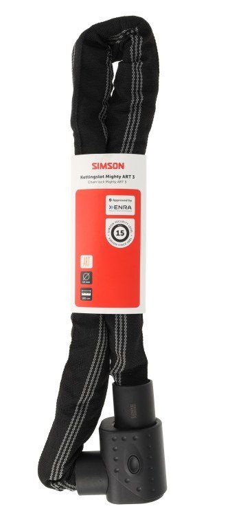 | Lange omschrijving | Het Simson Kettingslot Strong size L is een veilig zwart-rood kettingslot van 5,5mm dik. Met een lengte van 1 meter is het slot handig mee te nemen op de fiets. De ketting wordt geleverd met een robuust discusslot en twee sleutels. |